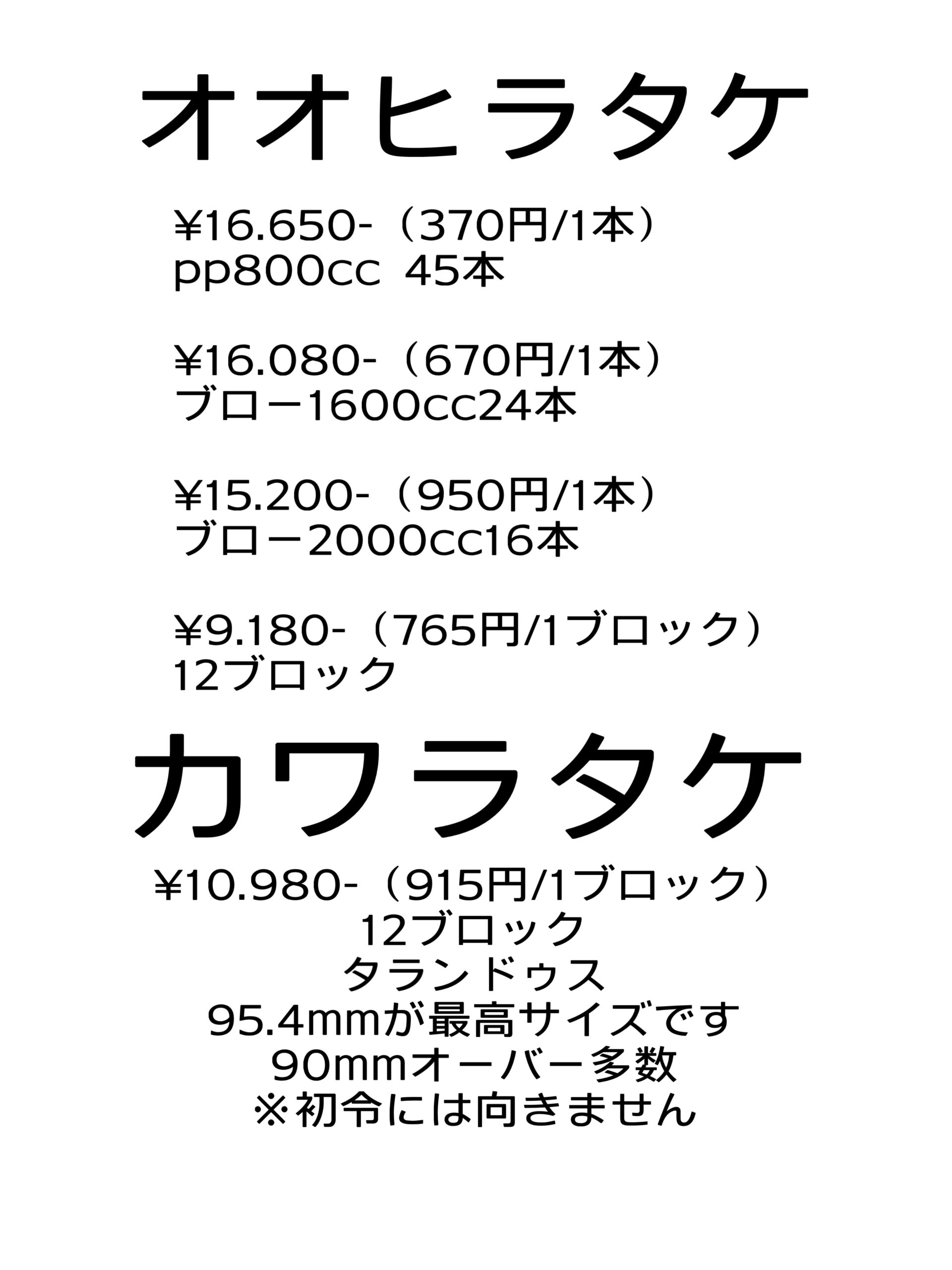 12ブロック、800cc45本、1600cc24本、2000cc16本